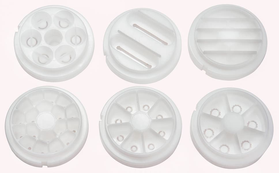 Отверстия на насадках для изготовления пасты расположены удобно, отдельные макаронины не слипаются друг с другом. Так что при большой любви к пасте, насадками можно пользоваться без особых затруднений, хоть дело это и трудоемкое.