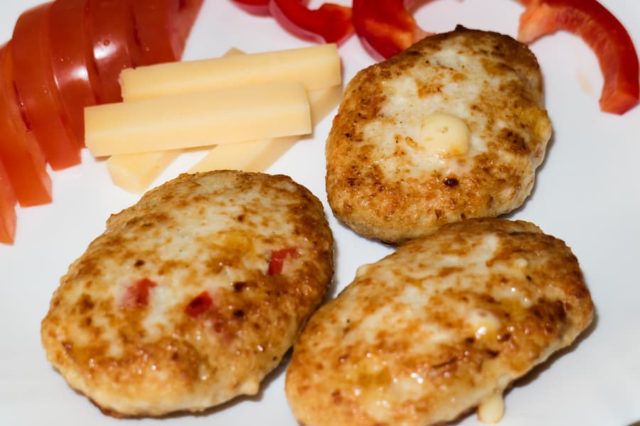 Обжаривали на сковородке, выкладывая готовый фарш с помощью ложки. Панировку не использовали.
