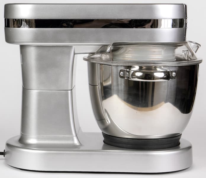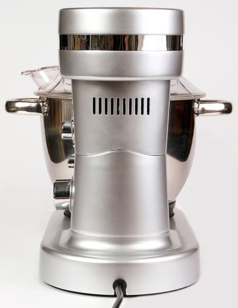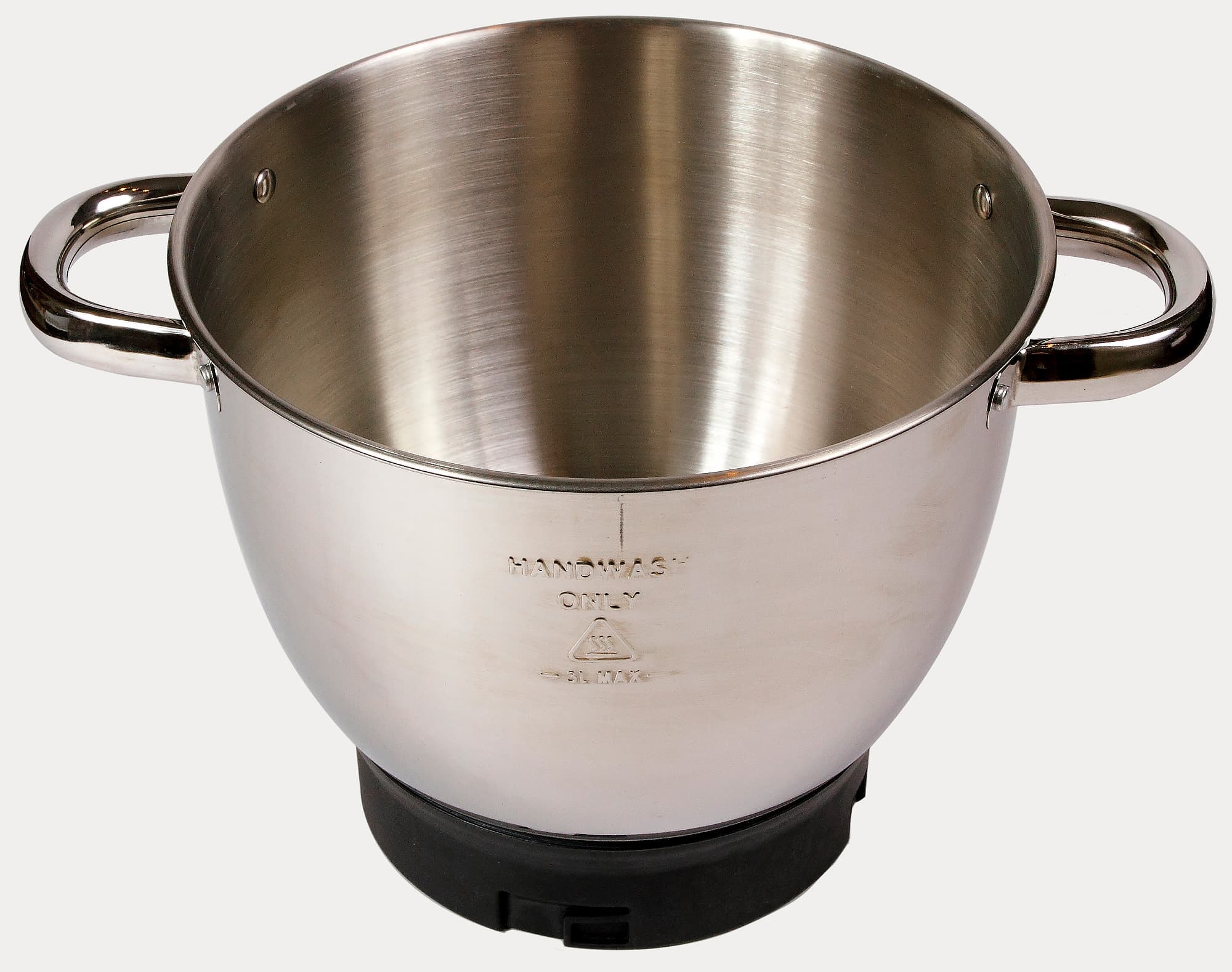 Дежа объемом в пять литров сделана из полированной нержавеющей стали. Форма стандартная для планетарных миксеров: цилиндрические стенки, переходящие к основанию в сферу. На дне расположен термодатчик, проложенный силиконовой прокладкой. Емкость оснащена двумя ручками, что облегчает как взаимодействие с готовыми субстанциями, так и фиксацию и снятие дежи с основания моторного блока. На боковой стенке имеется отметка о максимально допустимом объеме.