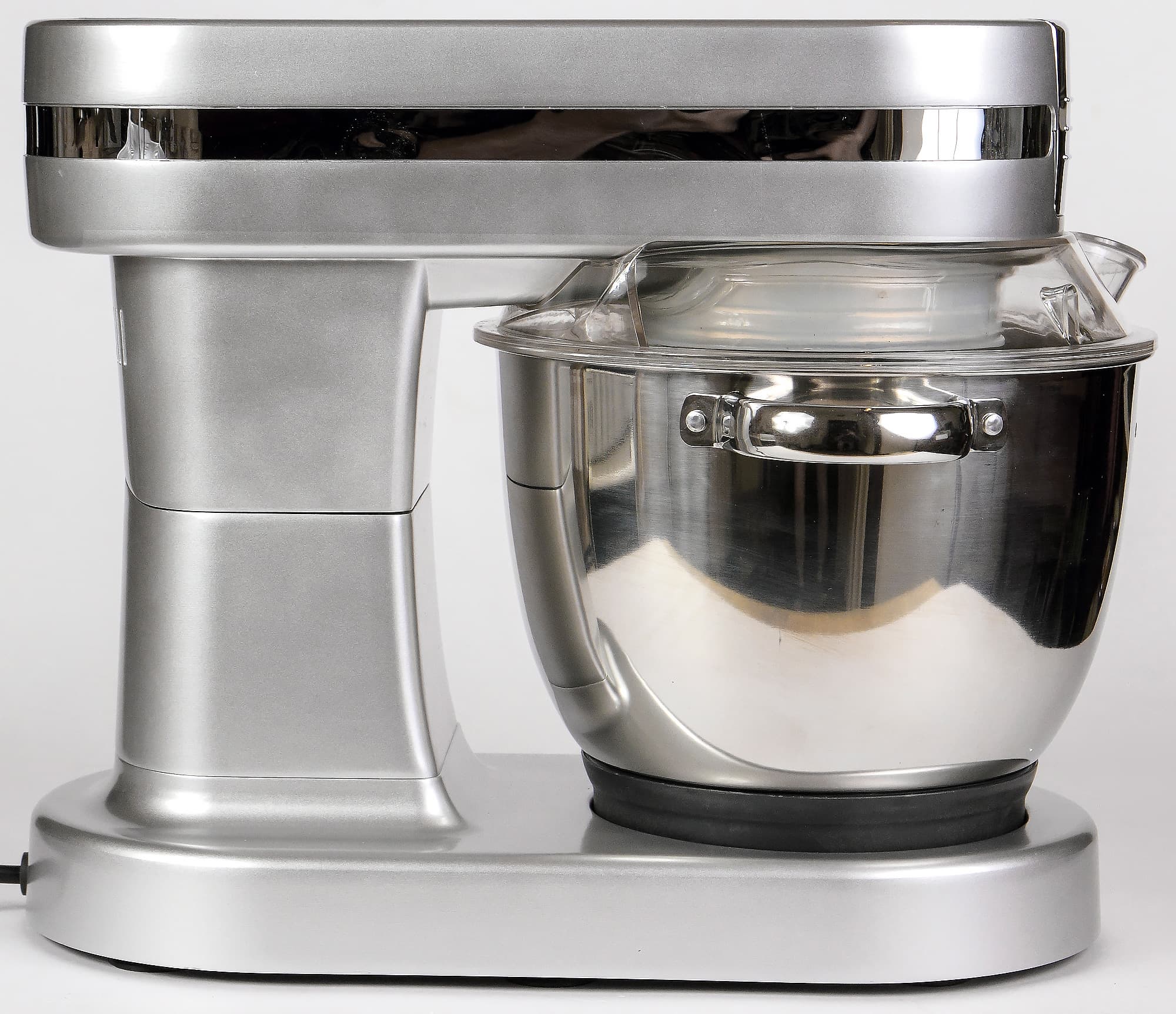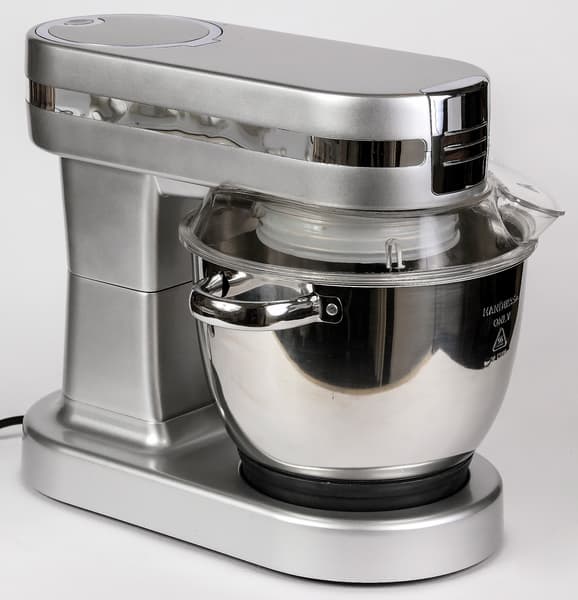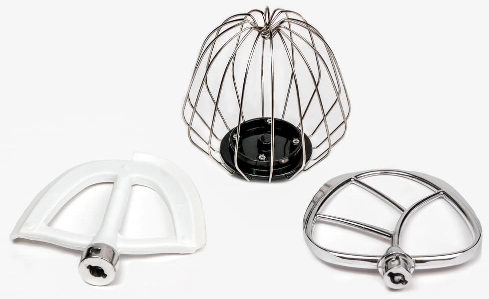 - планетарный миксер: дежа, крышка, крюк для замеса плотного теста, лопатка, венчик, термоупорная пластичная лопатка