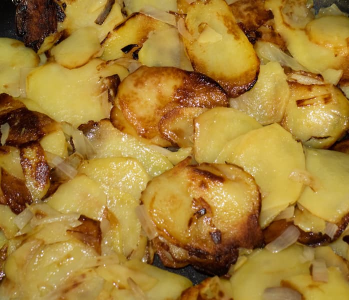 Мы, недолго думая, пожарили картофель на сковородке. Мелкие фрагменты пока отложили в контейнер и залили водой, предполагая использовать их в последующих опытах.