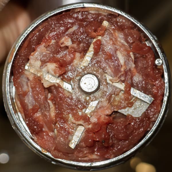 Интересно и то, что тест на жилистой говядине прибор прошел на «отлично». Значит, он все-таки способен справиться с разрезанием жил. Возможно, мы недостаточно сильно закрутили кольцевую гайку, так что при использовании насадки-мясорубки следует хорошенько затягивать все детали соединения. Только для последующей разборки нужно иметь мужчину, потому что автор статьи, например, самостоятельно не справилась с откручиванием детали после тестов с говядиной.
