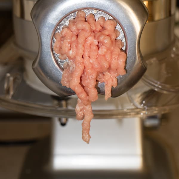 Напомним, что в этом тесте мы перемалываем свиной окорок, не подвергавшийся заморозке и очищенный от жилок и жира. Цель опыта — измерить производительность прибора, т. е. сколько мяса может переработать тестируемая мясорубка за одну минуту.
