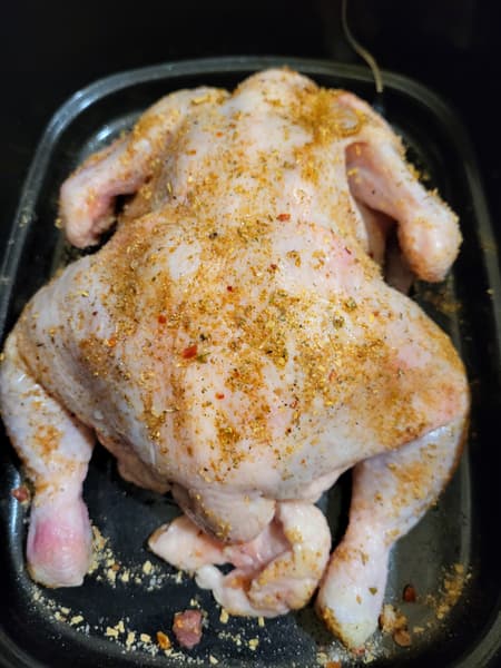 Ну и последним тестом мы решили сделать курицу-гриль, потому что странно, имея в распоряжении целый аэрогриль, не попытаться приготовить курицу.