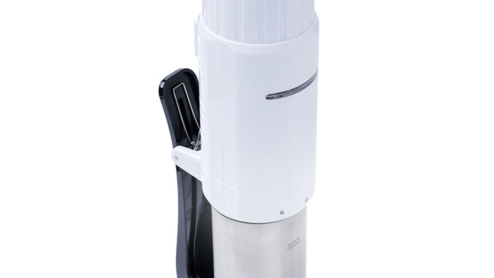 Отметим, что су-вид в целях безопасности не дает возможности установить нужный режим до погружения прибора в воду (панель управления окажется заблокированной, а на дисплее появится сообщение об ошибке). С одной стороны это логично (не позволяет запустить прибор без воды). С другой — заставляет пользователя манипулировать настройками непосредственно над рабочей емкостью, что может быть не всегда удобно (например, емкость для приготовления может располагаться слишком высоко или низко для комфортной работы с панелью управления).