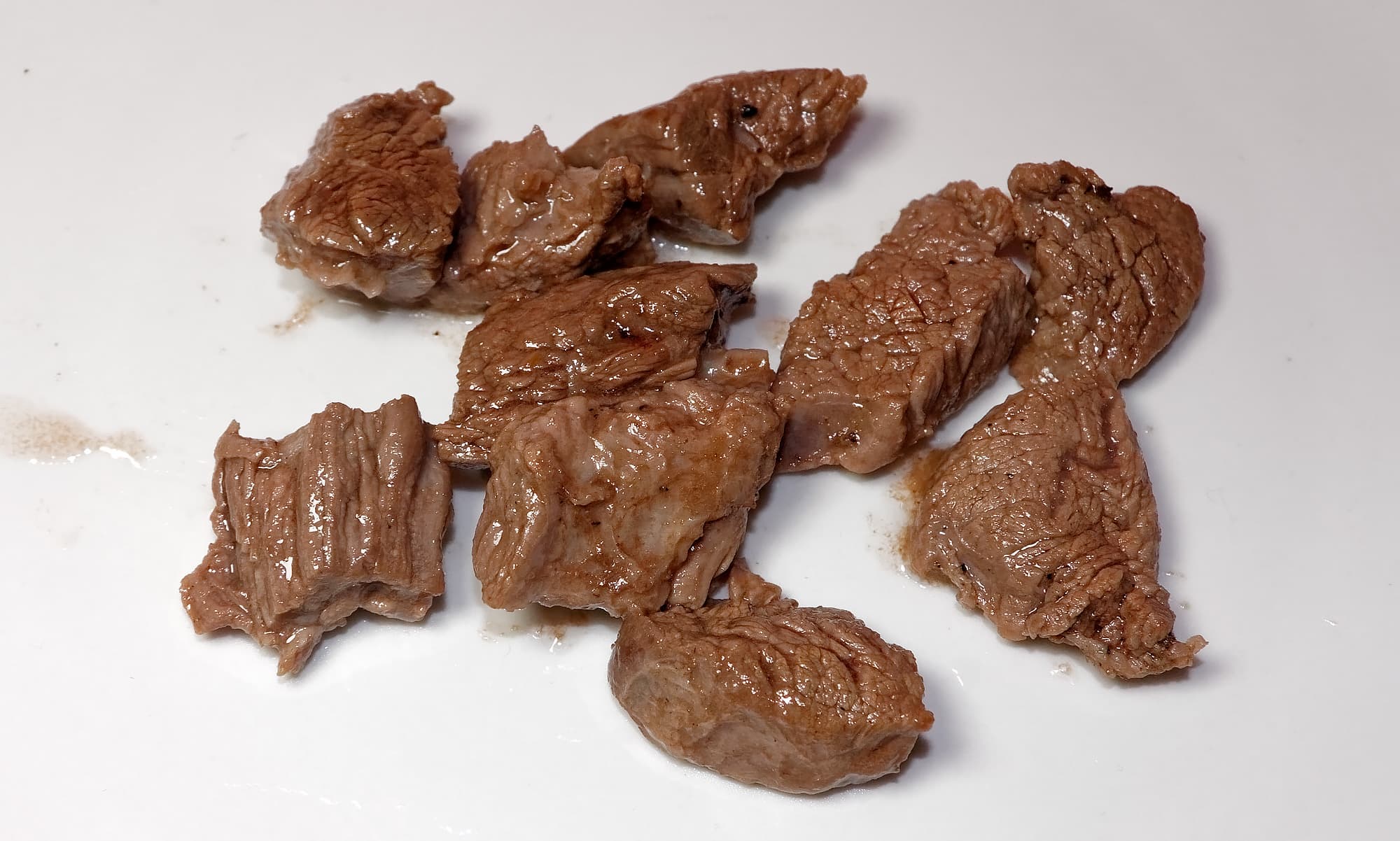 Для этого теста мы взяли кусок говядины (тонкий край на кости), добавили соль и перец, вакуумировали и готовили 12 часов при температуре 59 °C.