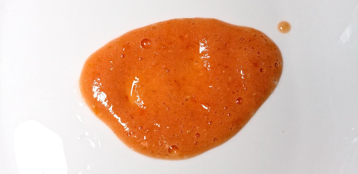 В итоге мы получили полностью однородную томатную смесь без заметного вкрапления неперемолотых частиц кожуры и семечек.