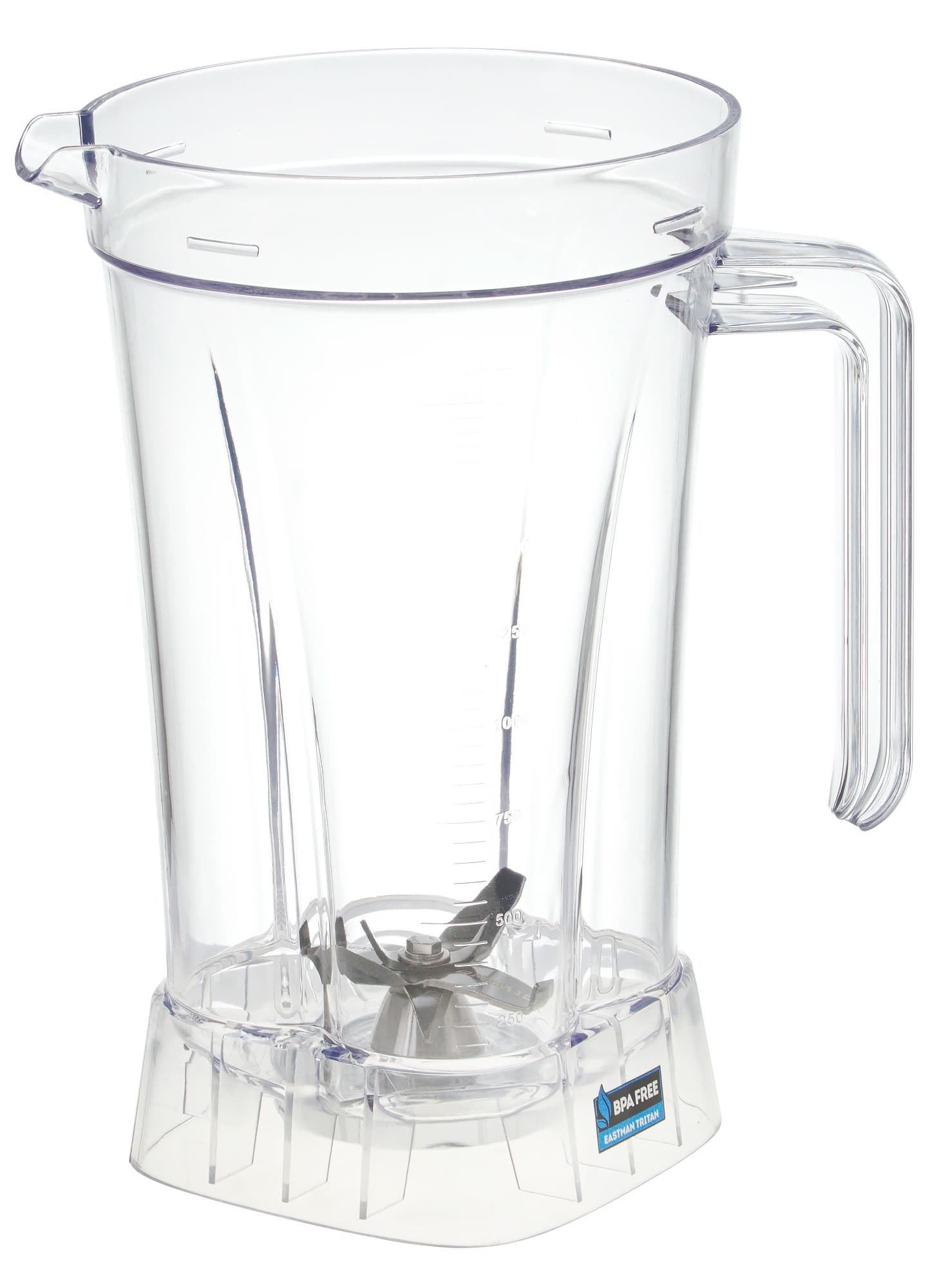 Кувшин сделан из тритана — легкого, небьющегося и прозрачного пластика. С одной стороны у него имеется градуировка от 250 до 2000 мл с шагом в 50 мл, благодаря чему можно довольно точно подобрать нужное количество ингредиентов без помощи дополнительных мерных емкостей.