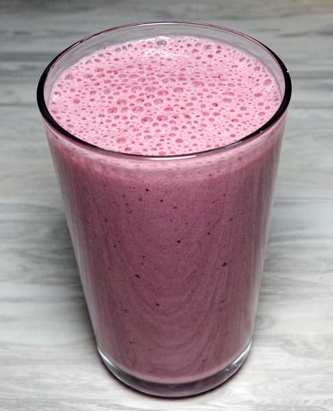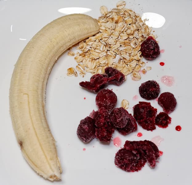Смузи (банан, замороженная вишня, хлопья, молоко)