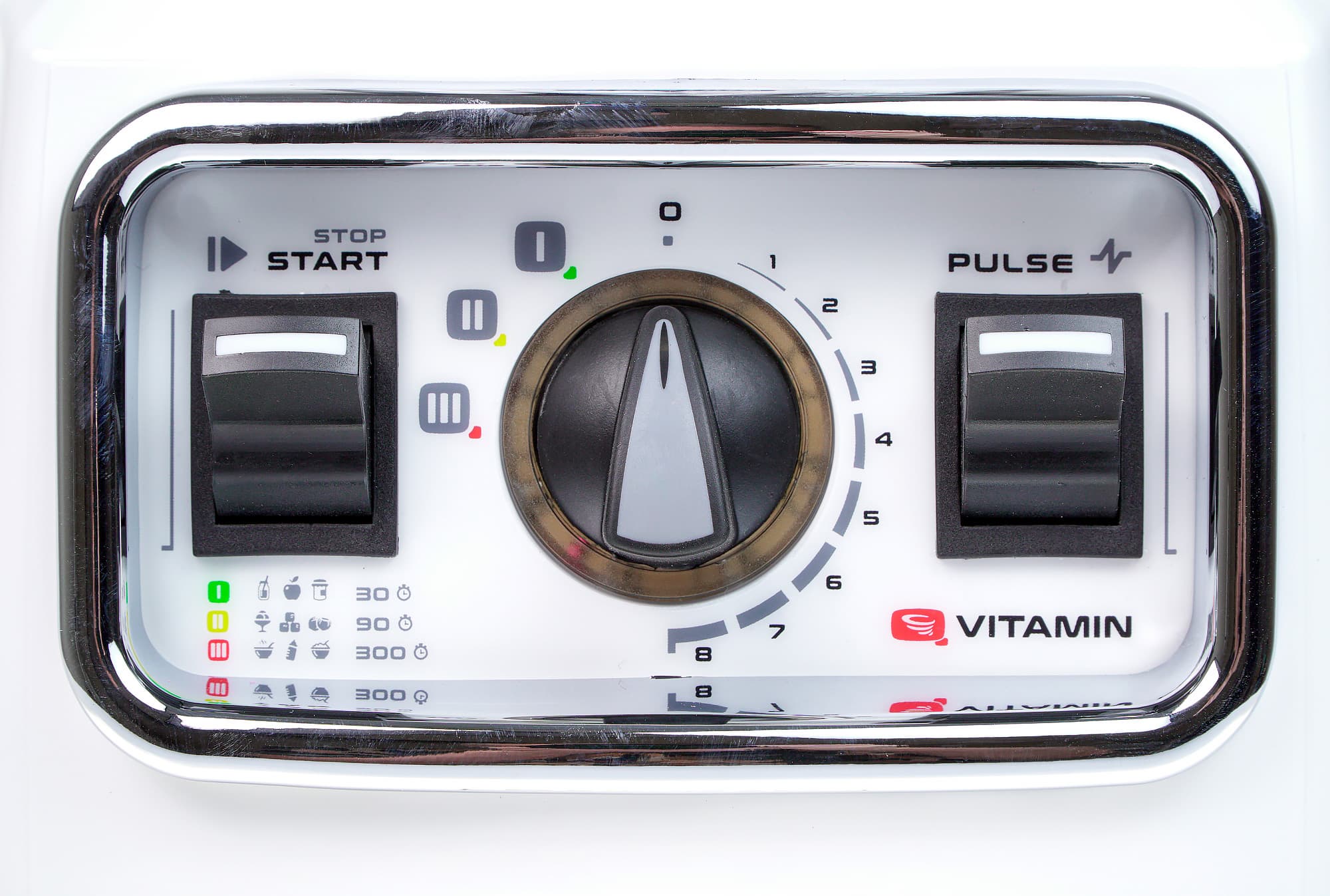Панель управления расположена на лицевой стороне моторного блока, и состоит из двух механических переключателей и вращающейся ручки. Рядом с каждым органом управления находятся поясняющие надписи и пиктограммы, благодаря чему начать пользоваться блендером можно, не заглядывая в инструкцию.