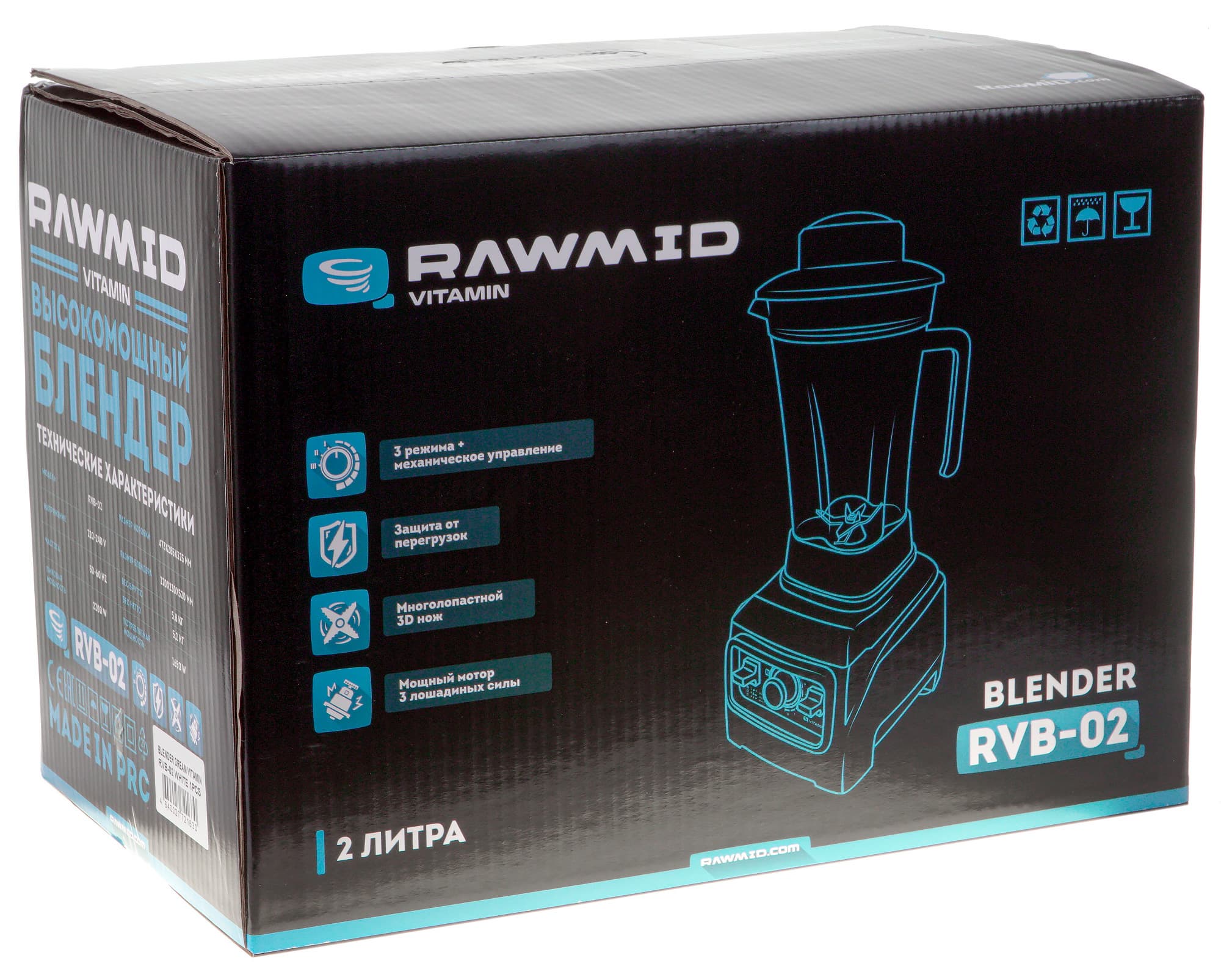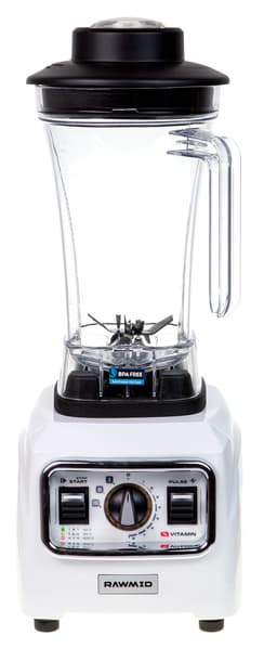Блендер Rawmid Vitamin RVB-02 относится к профессиональным моделям и имеет все соответствующие признаки: мощность в 2200 Вт, скорость вращения ножей до 30 тысяч оборотов в минуту, объемный кувшин емкостью 2 литра, несколько встроенных программ и стильный внешний вид.