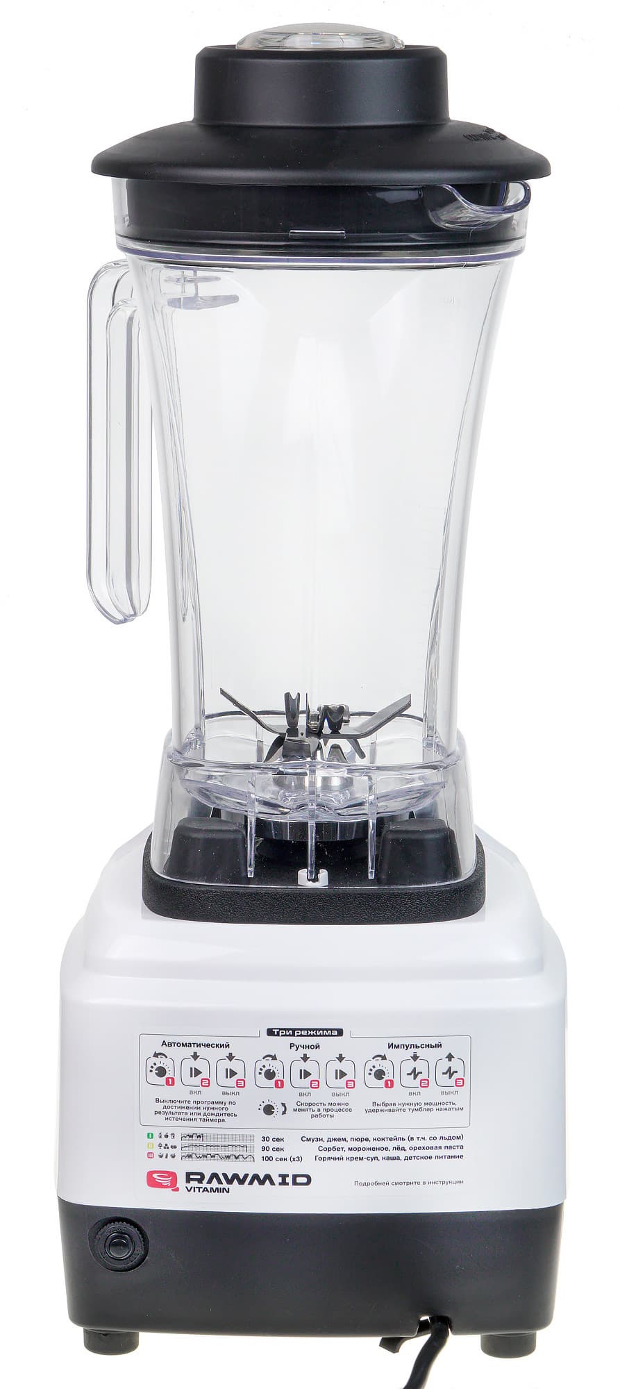 Более того: как нам сообщили представители Rawmid, у данной модели по сравнению с предыдущей версией «витамина» используется более тяговитый мотор и новая система прессовки подшипников, а также увеличен срок гарантии на ножи и кувшин — с 6 месяцев до 1 года.