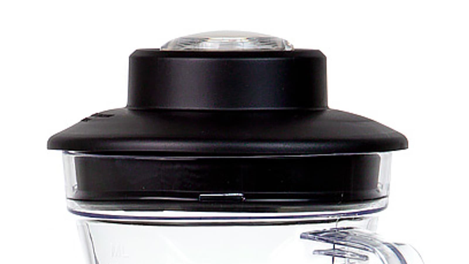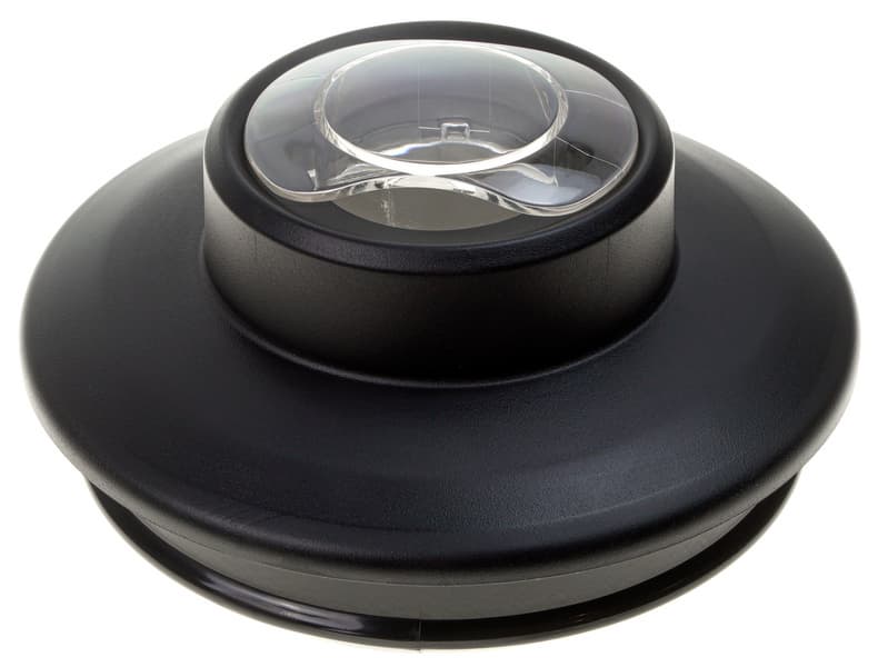 Крышка кувшина сделана из не слишком жесткой резины. Сверху у нее предусмотрено отверстие, которое можно использовать для добавления ингредиентов непосредственно в процессе работы или для перемешивания их внутри чаши с помощью толкателя. Закрывается это отверстие с помощью пластиковой мини-крышки, которая фиксируется на своем месте поворотом на несколько градусов по часовой стрелке.