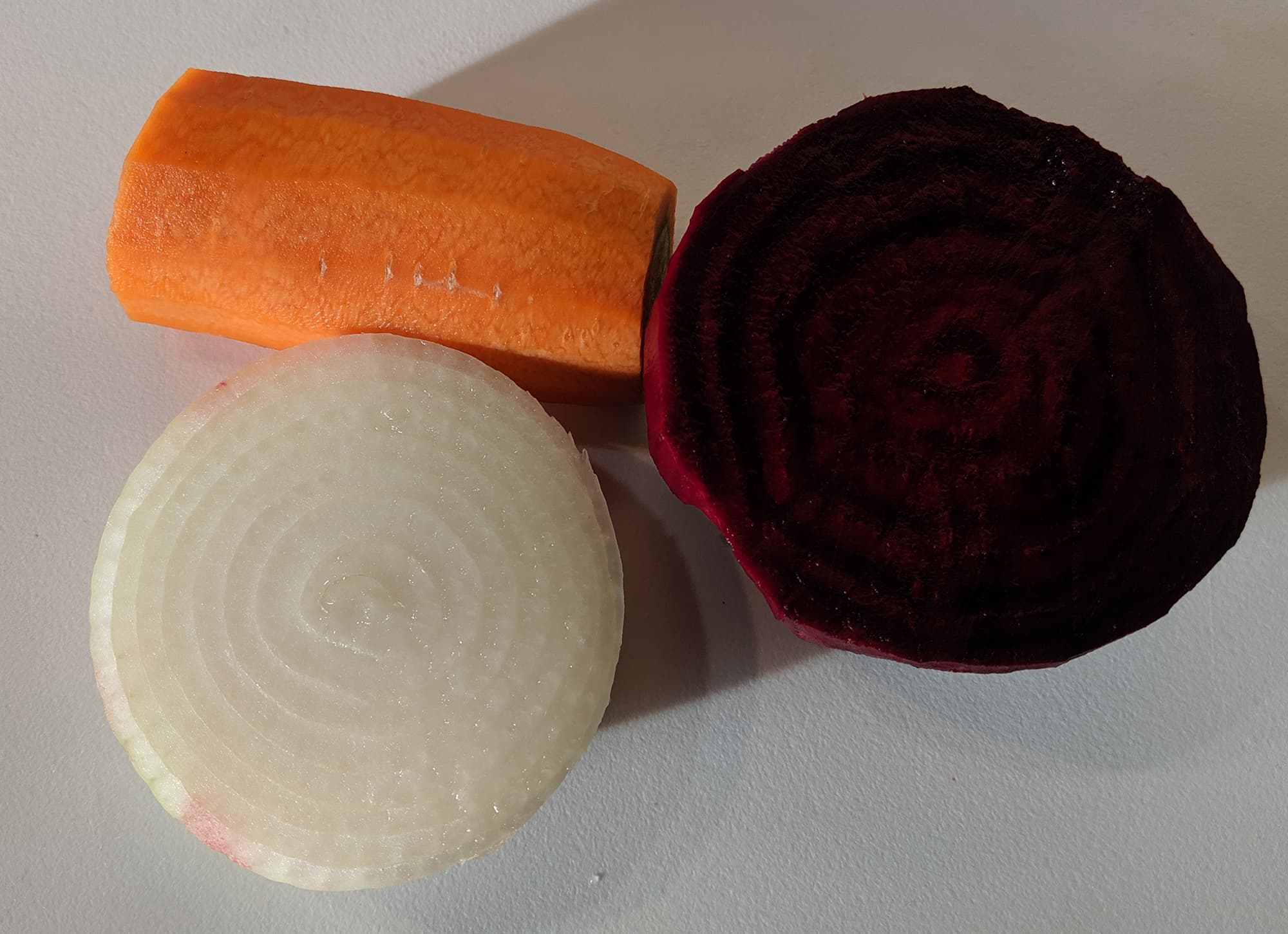 Нарезанные средне или тонко морковь, лук и свеклу надо обжарить с небольшим количеством растительного масла и приготовить с этой зажаркой борщ на любом бульоне: говяжьем, курином или овощном.