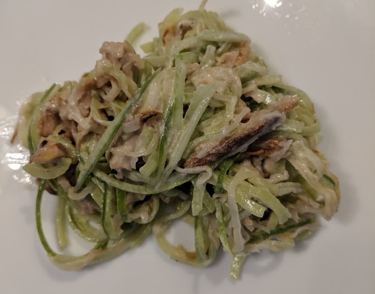 Нарезанный на средней величины «макаронины» кабачок может заменить спагетти во многих блюдах. Мы приготовили из него веганские макароны, добавив нарезанную так же морковь. Все это обжарили до состояния «аль денте» на сковороде почти без масла и с таким аппетитом съели, что даже не успели сфотографировать.