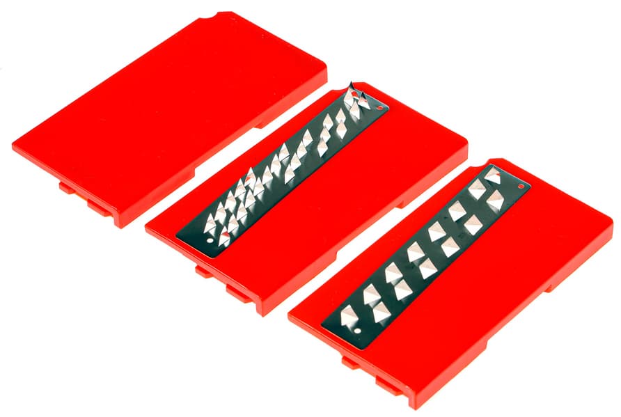 Ножи вставляются в пазы не вполне очевидно: при любой неосторожности их либо перекосит, либо они вставятся слишком глубоко и вынуть их обратно будет непросто. Поэтому надо внимательно следить, чтобы они вставали ровно и не слишком на них надавливать. После первых нескольких раз это начинает получаться, но до того процессу придется отдать все внимание. Держатся ножи в пазах панели надежно.