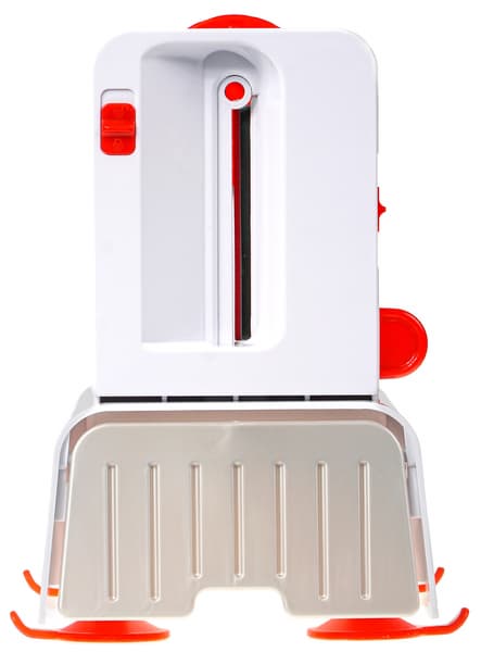 Самая крупная часть спиралерезки — это основание с креплениями для остальных частей. Оно стоит на четырех довольно длинных ножках с мощными присосками, которые надежно удерживают устройство на поверхности. При нажатии на «хвостики» присоски расфиксируются и освобождают основание.