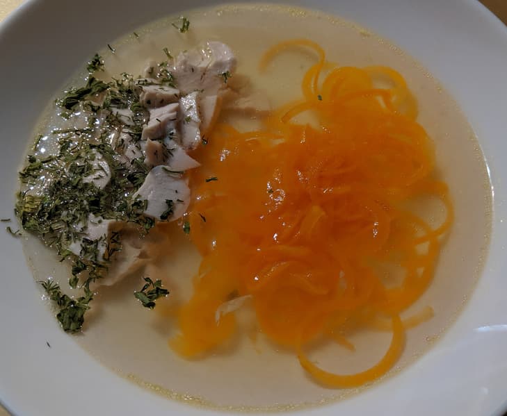 Нарезанную самой тонкой соломкой морковь можно класть вместо обычной лапши в куриный бульон. Варится она недолго, а результат получается не только вкусный, но и красивый.