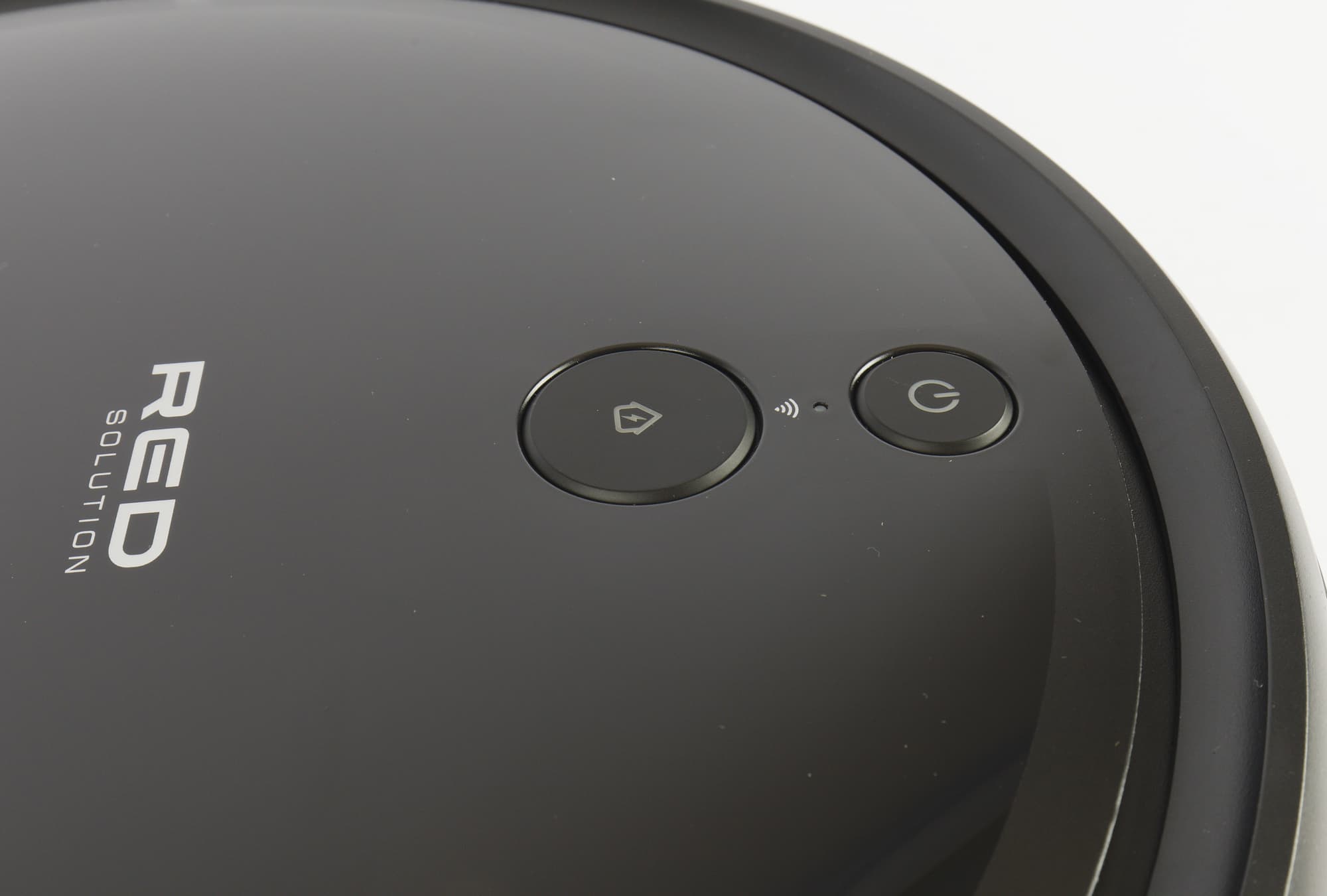 Как и у большинства роботов-пылесосов, корпус у Red Solution RV-RL6000S Wi-Fi круглый. Сделан он из матового черного пластика, а верхняя панель и верхушка башенки лазерного датчика — глянцевые.