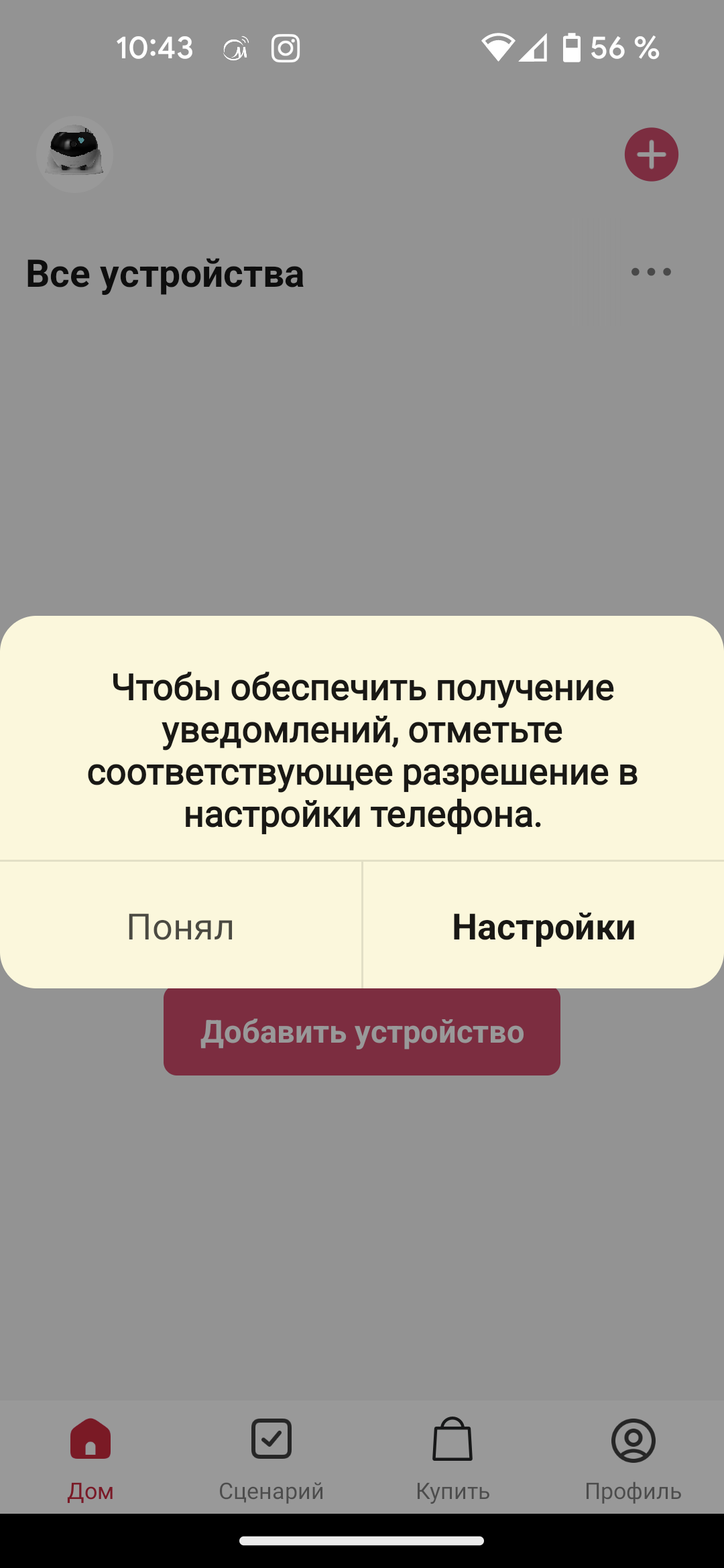 Для корректного обнаружения пылесоса следует также предоставить доступ к данным о местоположении устройства.