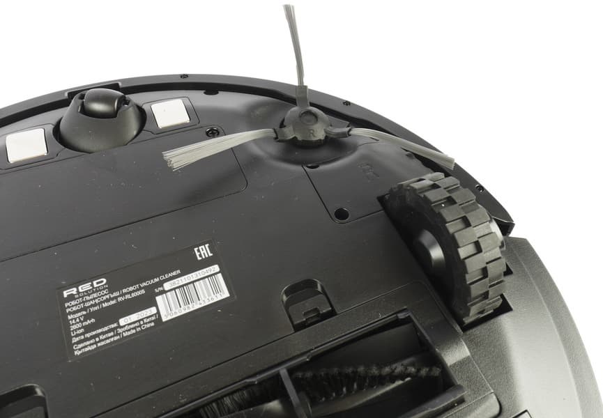 На рамке центральной щетки — два пластиковых элемента, защищающие ротор от случайного наматывания проводов и прочих инородных предметов. К задней части прикреплен резиновый уплотнитель, улучшающий прилегание к полу.
