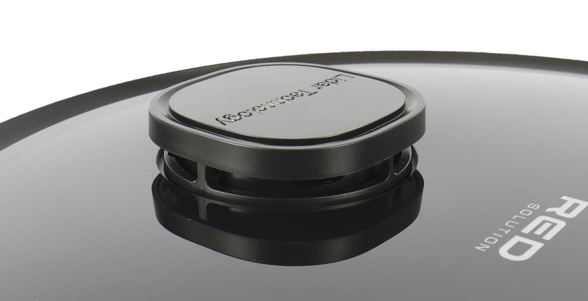 Башенка, в которой скрывается лидар, возвышается над верхней панелью. Внутри нее вращается пара оптических датчиков, позволяющих прибору быстро и точно строить карту помещения.