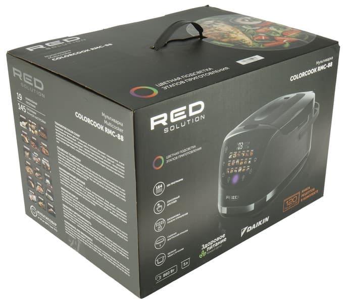 В линейке мультиварок Red Solution появилась новая модель, ColorCook RMC-88. Устройство оснащено 19 режимами работы, набором классических функций, таких как автоподогрев, отложенный старт и блокировка панели от случайного касания, а также гибкой системой регулировки параметров времени и температуры. Отличительной особенностью этой модели стал инновационный сенсорный дисплей с цветной индикацией этапов приготовления.