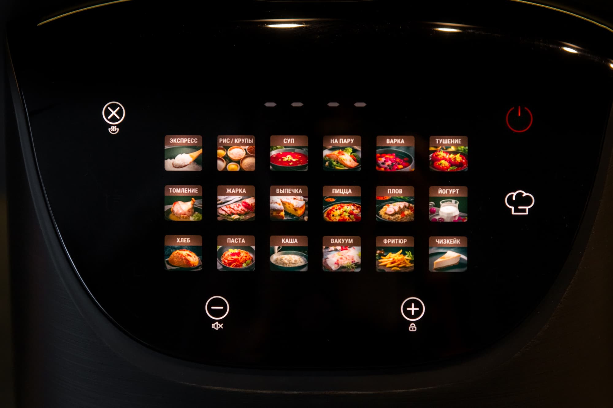 Большой яркий дисплей с цветовой индикацией этапов приготовления и простоту управления в целом также отнесем к плюсам. Ну и, конечно, не забудем про эстетическую составляющую: мультиварка прекрасно сложена и выглядит очень привлекательно.
