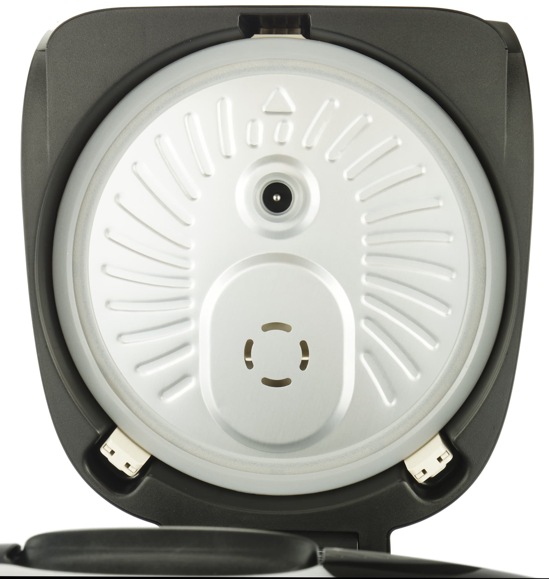 С внутренней стороны — съемная крышка с неотсоединяемой уплотнительной резинкой по внешнему краю. В верхней части уплотнительная резинка у отверстия для выхода пара вынимается.