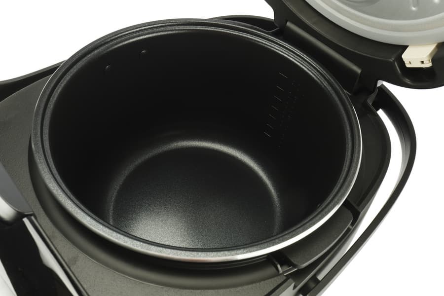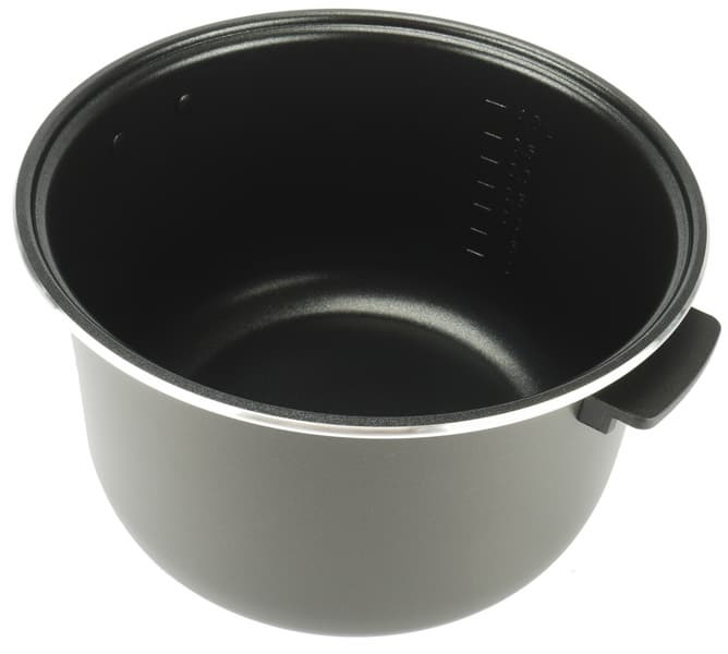 Внутрь вставляется чаша с антипригарным покрытием. Она достаточно легкая, обычной формы.