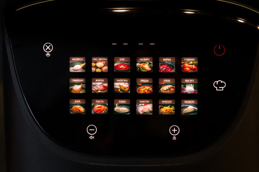 Панель управления Red Solution ColorCook RMC-88 представляет собой цветной сенсорный дисплей. Он достаточно яркий, информация легко читаема при любом освещении.