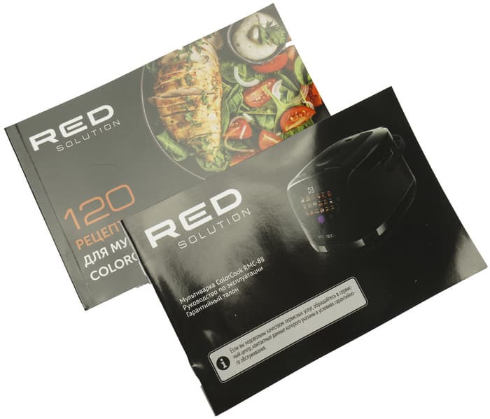 К мультиварке прилагается иллюстрированная книга на 120 рецептов, адаптированных к этой модели. Это каши, супы, вторые блюда, гарниры, блюда на пару́, закуски и салаты, хлеб и выпечка, напитки и десерты. Все рецепты сопровождаются подробным описанием процесса приготовления и качественными, красивыми фотографиями.