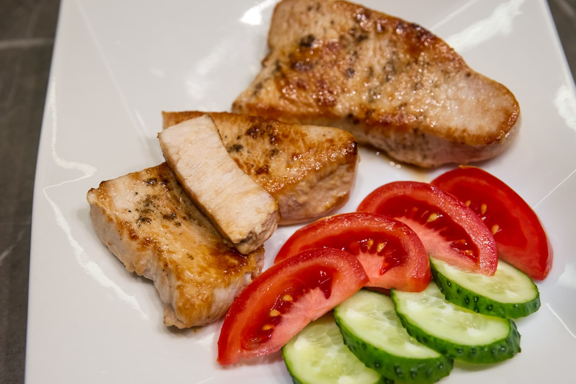 Этого времени хватило, чтобы мясо равномерно поджарилось, осталось достаточно сочным и не пересушилось.
