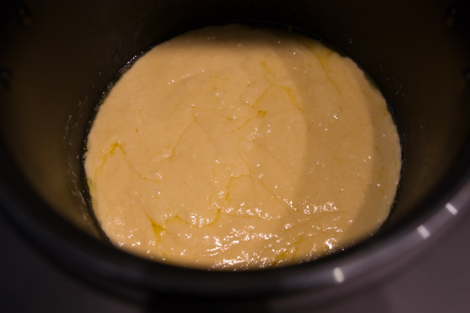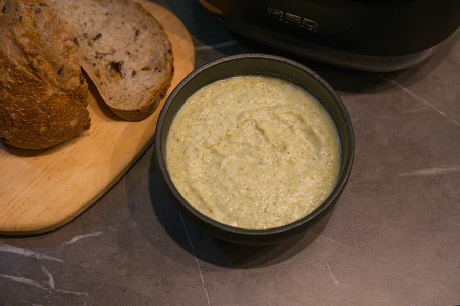 В первую очередь в режиме Варка сварили бульон из куриной грудки. По умолчанию программа работает ровно час при нагреве 100 °C. Варка происходила с закрытой крышкой. Через 10 минут после запуска вода закипела и температура ее дошла до 99 °C. Для бульона это многовато, поэтому мы снизили нагрев до 90 °C. Через некоторое время температура жидкости снизилась до 93 °C и оставалась такой до самого окончания программы.
