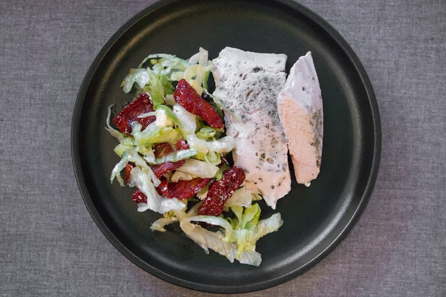 Вторую часть филе индейки мы разрезали на три части, обсыпали солью с травами, вакуумировали и продержали в холодильнике в течение 5 часов.