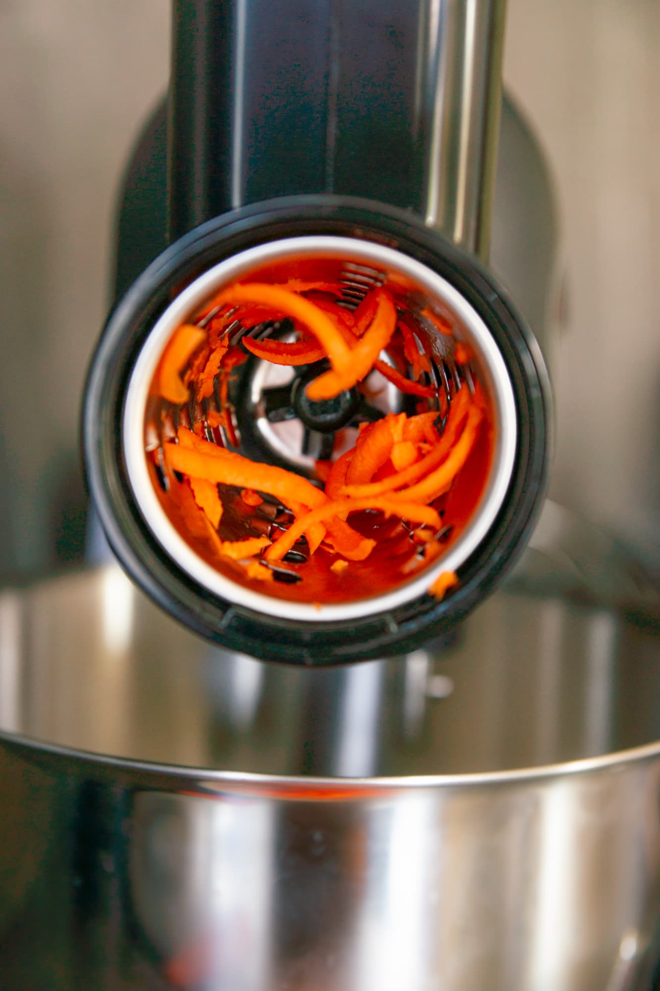 Морковь была натерта на 5-й скорости за считанные секунды аккуратными одинаковыми кусочками. На корнеплод весом 100 г уходило примерно секунд 15-20.