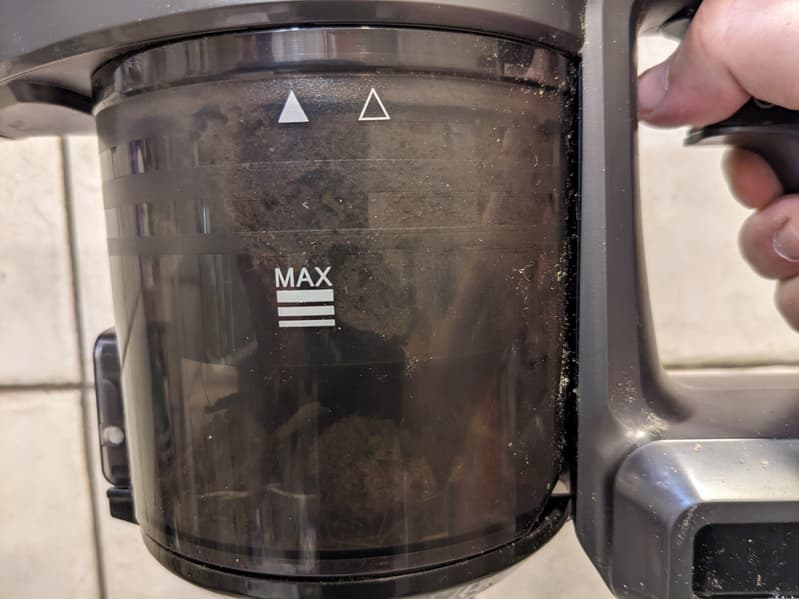 Большую часть мусора из резервуара можно вытряхнуть в ведро, не запачкав рук.