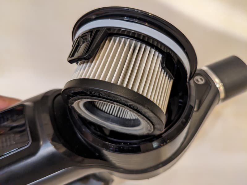 Фильтр тонкой очистки располагается сверху, под круглой крышкой, и представляет собой цилиндрический HEPA-элемент.