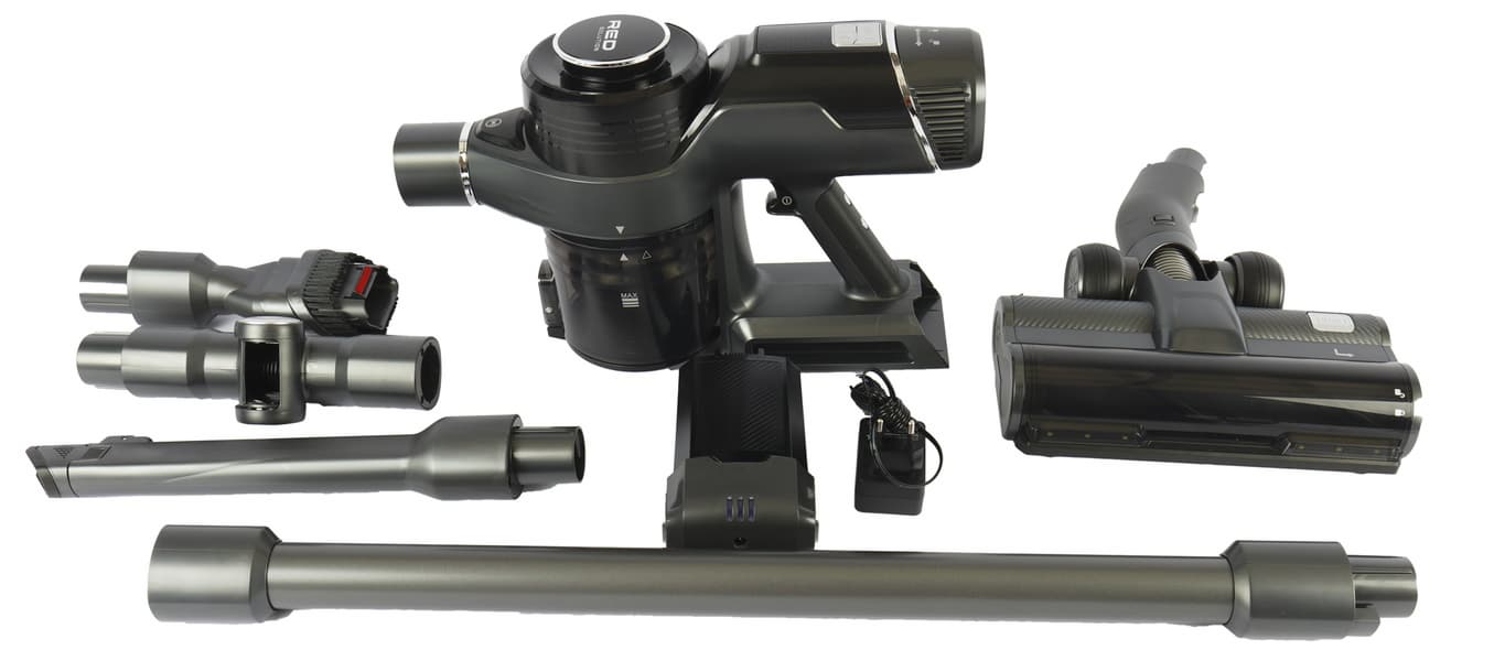 В ручной конфигурации использовать Red RV-UR3200 не менее удобно, чем в напольной. Но на качество уборки влияет довольно аскетичная комплектация. С этой моделью поставляются только две неэлектрифицированных насадки: щетка «2 в 1» и телескопическое щелевое сопло. Владельцам домашних животных, к примеру, захочется добавить к базовой комплектации электрощетку для мебели, а автовладельцам — приобрести гибкую гофрированную трубку для доступа к труднодоступным местам в салоне.