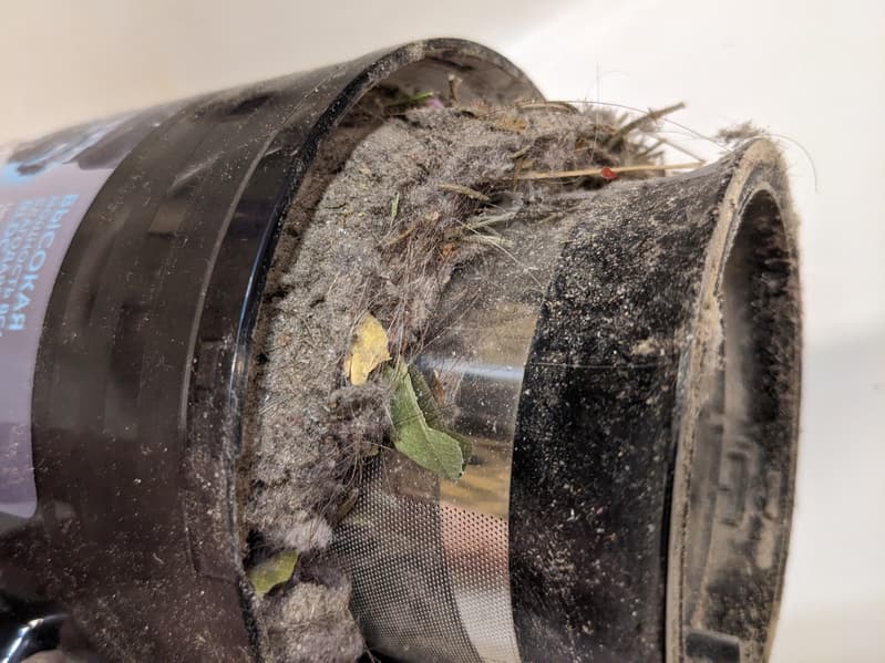 Ее не так много, как можно было ожидать: после нескольких интенсивных уборок на внутренней поверхности фильтра тонкой очистки скопилось совсем немного грязи.