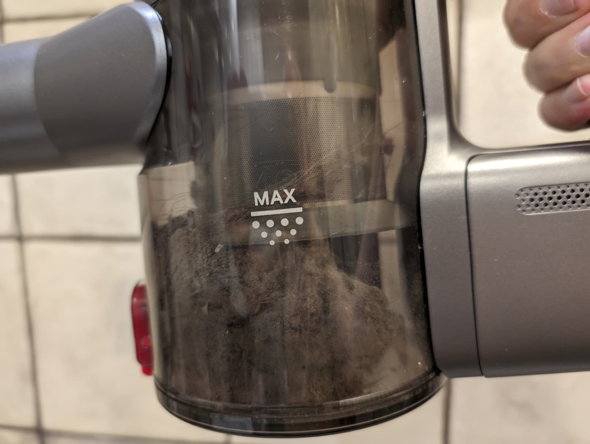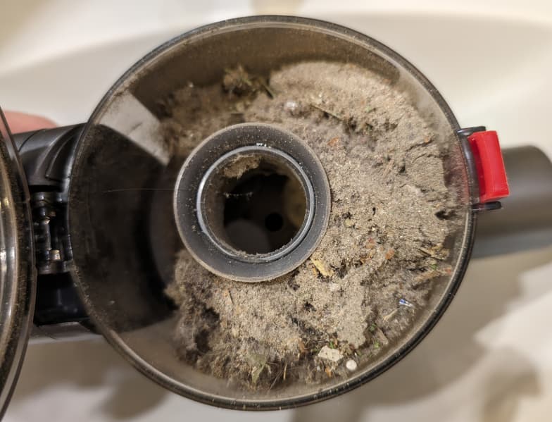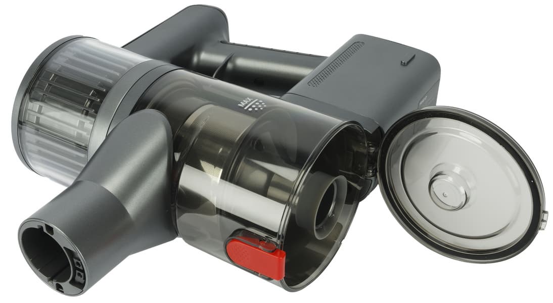 Заполнение мусоросборника удобно контролировать через прозрачные стенки контейнера. Значительная часть загрязнений оседает в нижней части емкости: циклонный фильтр спроектирован грамотно и работает эффективно.