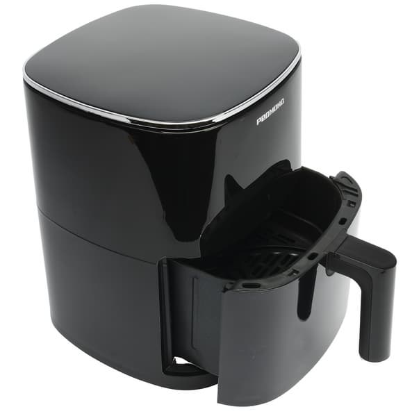 Следует отметить, что полезный объем чаши — не 6, а 4,5 л, так что особенно крупные продукты в этом аэрогриле приготовить не удастся.