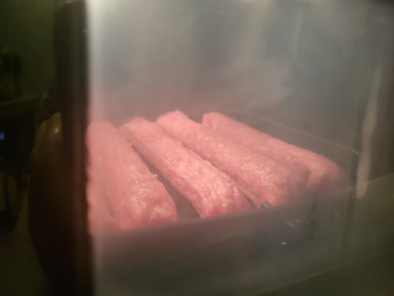 Результат нас поразил: чевапчичи уменьшились в размере почти в два раза. Возможно, стоило всё же уменьшить время приготовления и выставить, например, не 18 минут, а 14.