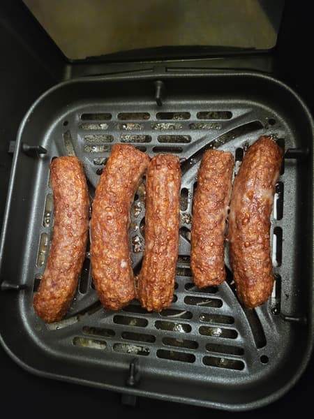 Тут надо признаться, что чевапчичи мы просто купили в магазине, хотя, опять же, в книге есть рецепт. Выложили их на решетку аэрогриля и включили автоматическую программу «Котлеты».