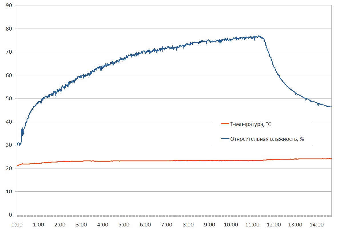 Для минимизации влияния внешних факторов мы плотно закрыли двери и окна. Между тестами помещение тщательно проветривали. Измерения температуры и влажности воздуха проводились автоматически, в комнате не было ни людей, ни животных.