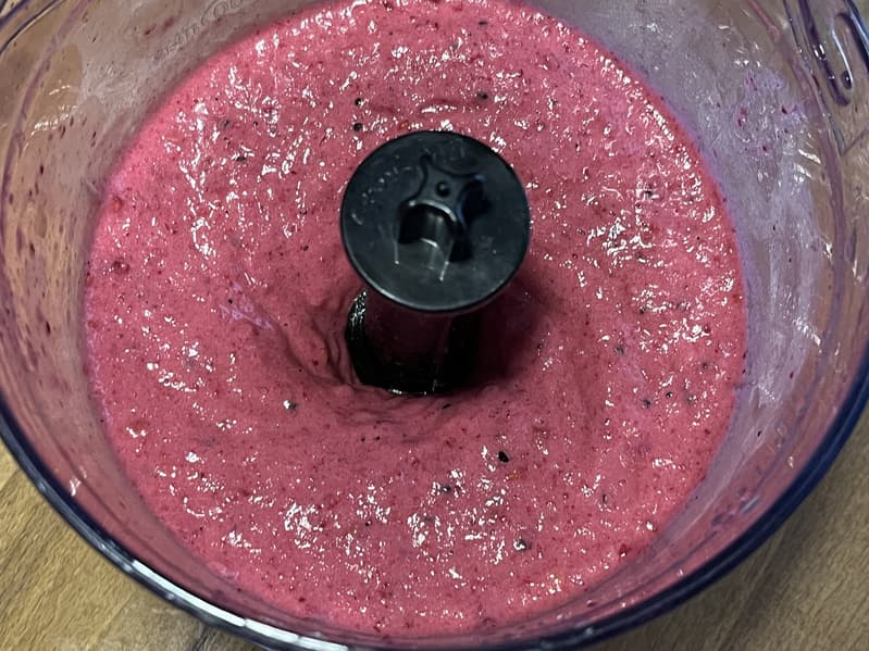 А чтобы не упрощать блендеру задачу, мы не добавили никакой жидкости, кроме двух столовых ложек густого черносмородинового сиропа.