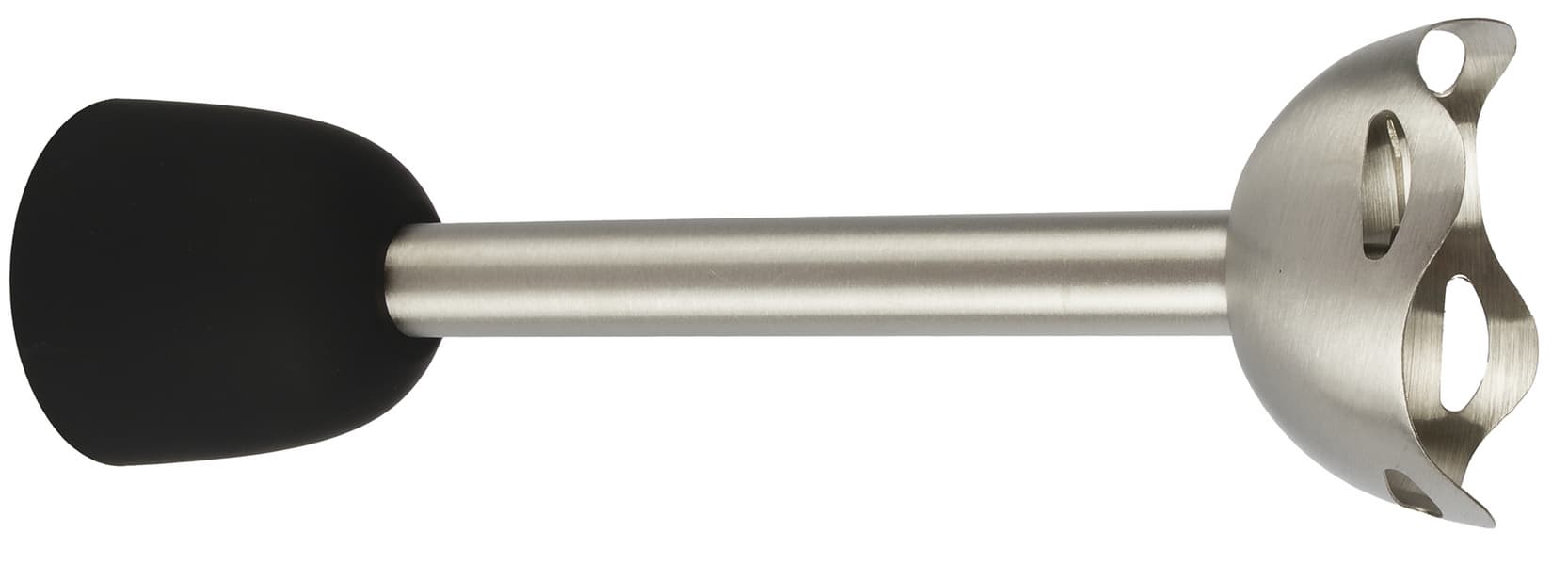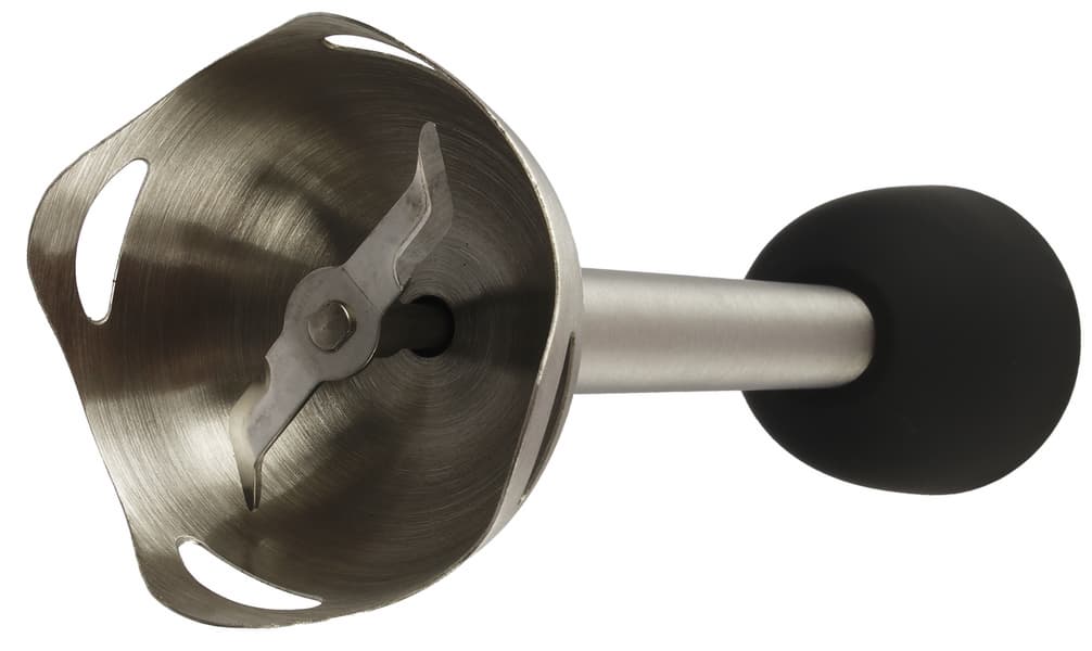 Насадка-блендер из нержавеющей стали — это полусфера с неровным краем и четырьмя отверстиями для лучшего смешивания ингредиентов.