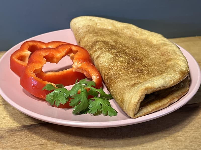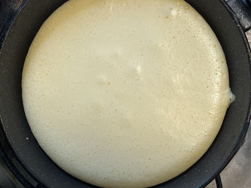 Ее мы отправили на разогретую сковороду и накрыли крышкой, чтобы омлет получился пообъемнее.