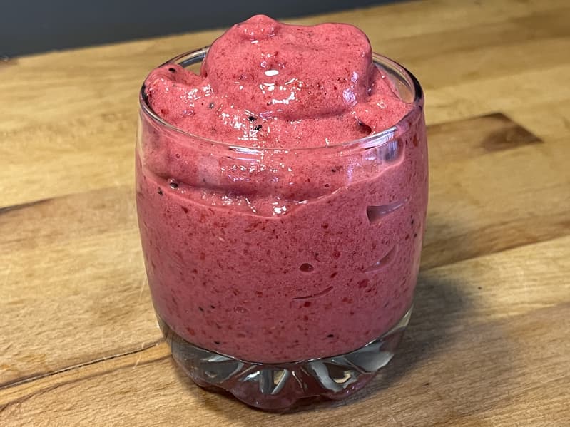 Из малины, манго, банана, красной питахайи мы взялись приготовить шербет.
