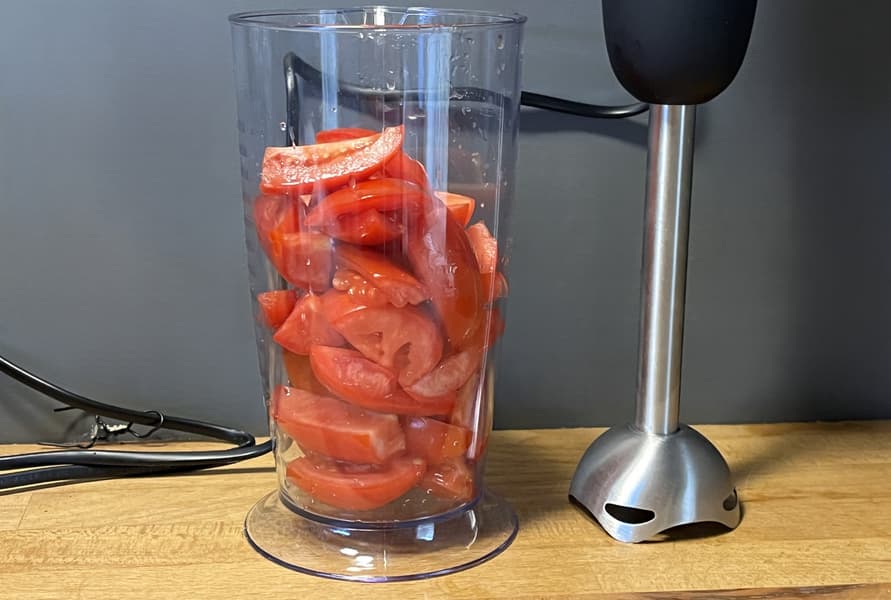 - Измельчение томатов (погружной блендер)